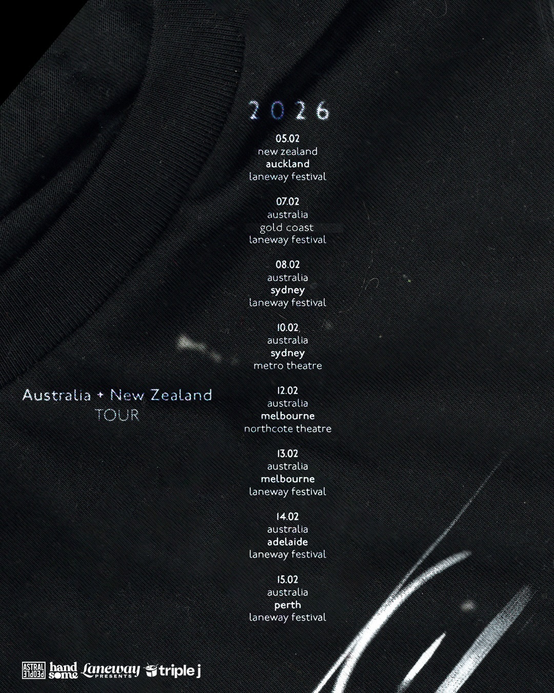 Now, with her debut album choke enough out in the world, she’s firmly at the forefront of the scene. Across 13 tracks, Oklou builds a world of lush ambience and surreal intimacy, turning electronic production into something cinematic and deeply human. February 2026 will mark her debut Australian shows.